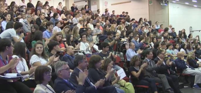 “Abbiamo acceso l’Etna per voi”: con queste parole la professoressa Alessia Tricomi, direttore della sezione INFN di Catania e Direttore del Centro Siciliano di Fisica Nucleare e Struttura della Materia, venerdì 18 ottobre ha accolto gli studenti giunti da tutta Italia per partecipare alla cerimonia conclusiva del Premio Asimov per l’editoria e la divulgazione scientifica. In una giornata non proprio tranquilla, dopo una scossa di terremoto alle 3 di notte, dopo alcuni collegamenti sospesi, treni e aerei in ritardo, l’eruzione dell’Etna in corso. “Ma tutto quello che avete trovato in realtà erano effetti speciali… per festeggiare il vostro arrivo”, ha continuato la professoressa Tricomi. Un premio, ideato dal professor Francesco Vissani, Dirigente di Ricerca presso i Laboratori Nazionali dell’Istituto Nazionale di Fisica Nucleare del Gran Sasso, che ha il merito di coniugare la cultura classica e quella scientifica, coinvolgendo migliaia tra studenti, insegnati, giornalisti, ricercatori e stimolando riflessioni profonde su argomenti di stringente attualità in ambito scientifico.